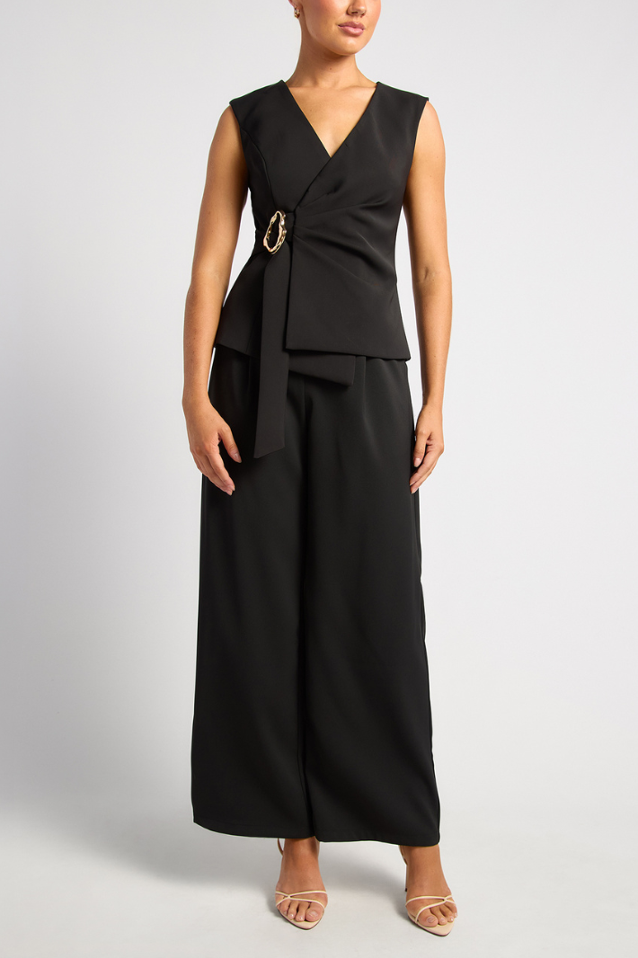 Our HASEY SLEEVELESS VEST TO is here to make you look classy and fine doll! It features a v-neckline, waist strap that goes through the gold decor to cinch that waist. Pair it with our HASEY HIGH WAISTED WIDE LEG PANTS for the ultimate badass look xx