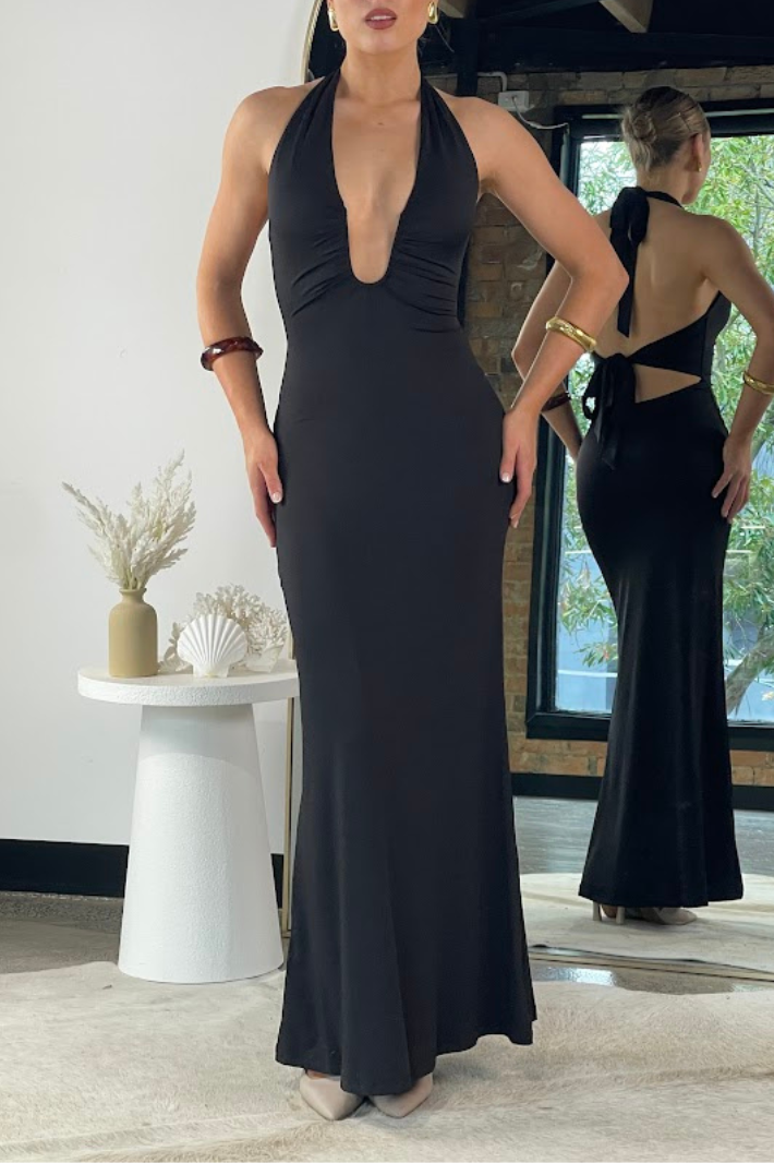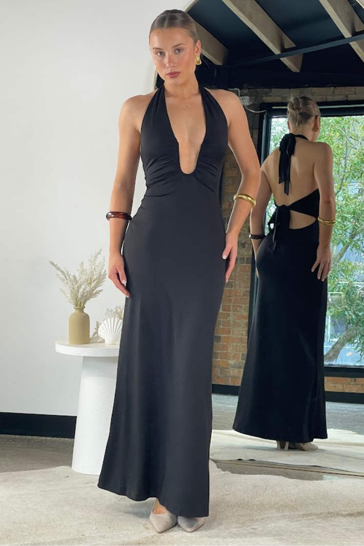 SEASI HALTER NECK MAXI DRESS - Black