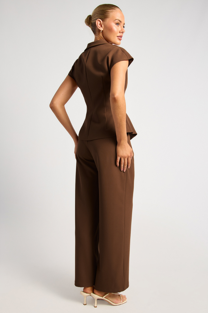 Our VANGEL PLEATED TOP & WIDE PANTS SET is the perfect feature to elevate any ocassional outfit! This top features a V-neckline, front button-ups and an elegant pleated hem. The pants features a high rise fit, wide legs and an elasticated back waistband.